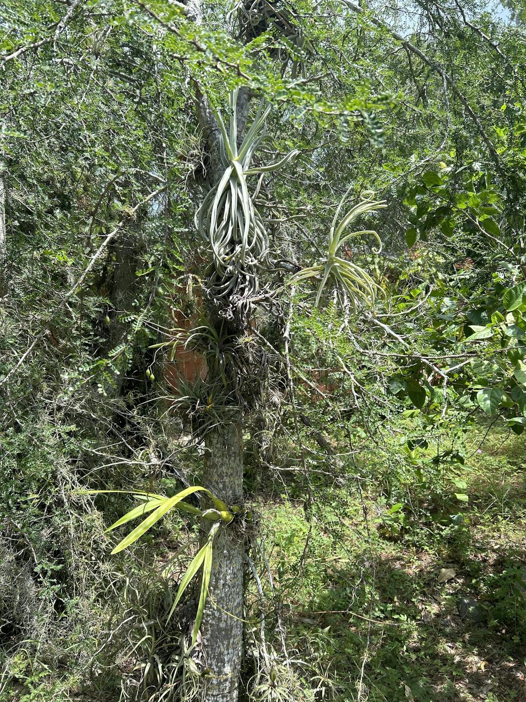 The granddaddy of fragrant Tillandsias. Native to Bolivia, Paraguay and Argentina where the trees in the arid Chaco are filled with this weird and wonderful, highly fragrant species. Having seen many thousands growing wild, I would have to call the plant a ‘vining’ species. The stem may grow to several feet long in older specimens and the leaves reach out and twist into tight curls at the tips. In nature, it may actually climb to the uppermost part of a tree in a few seasons, and many treetops are brimming with dozens of specimens reaching out into space.